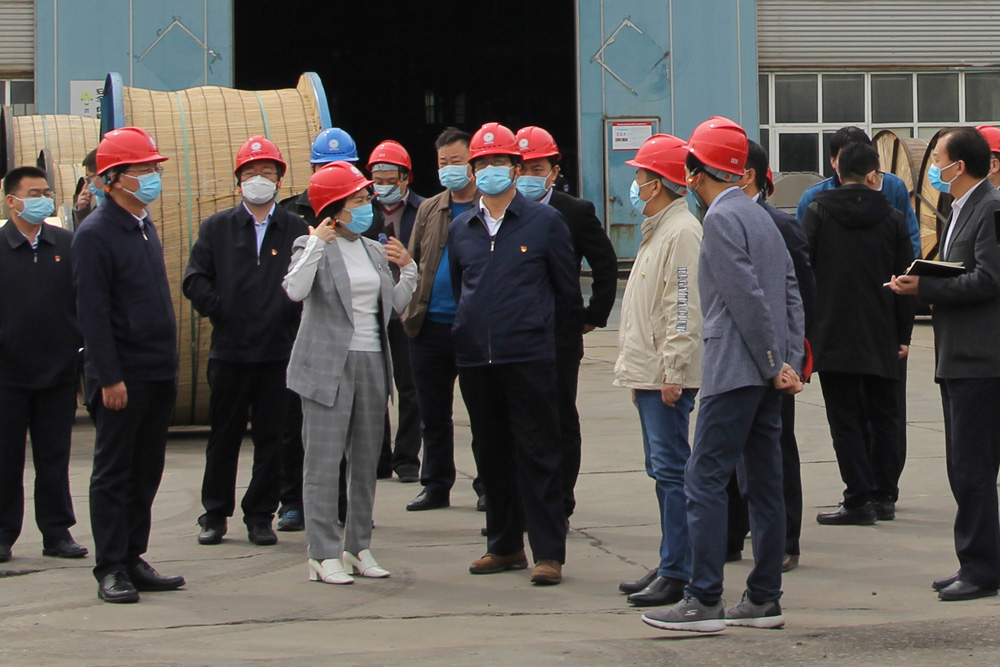 公司董事長馬紅菊、總經理曲洪普帶領何金平一行,到絞合車間、銅車間生產一線進行了實地參觀。董事長向何副省長匯報了公司防控疫情、複工複產、外貿攻堅等工作開展情況。