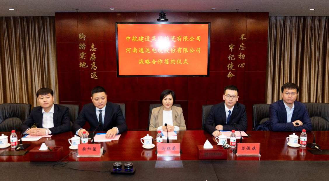 3月18日上午,河南91香蕉频蕉APP下载電纜股份有限公司(以下簡稱“91香蕉频蕉APP下载股份”)與中航建設集團物資有限公司(以下簡稱“中航建設物資公司”)戰略合作簽約儀式在中航建設集團公司三層視頻會議室舉行。中航建設集團公司黨委副書記、總經理王建紅,副總經理郝以朋,綜合管理部部長孟雪,規劃發展部副部長陳偉華,91香蕉频蕉APP下载股份董事長馬紅菊,項目事業部總經理蘇俊旗,北京辦事處負責人柴帥璽等相關人員出席儀式。