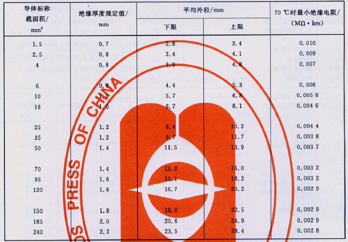 表 2 RV型450/750V銅芯聚氯乙烯絕緣軟電纜