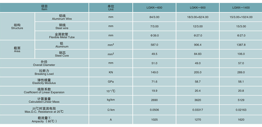 內管式擴徑導線主要用作330KV及以上變電站中的軟母線。用金屬軟管支撐將導線外徑擴大,目的是不產生可見電暈和減小對無線電的幹擾,主要有標稱截麵600、900及1400m㎡三種規格、1600m㎡耐熱擴徑母線。